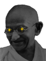 ガンジーの額すれすれで、刃はぴたりと止まっていた。