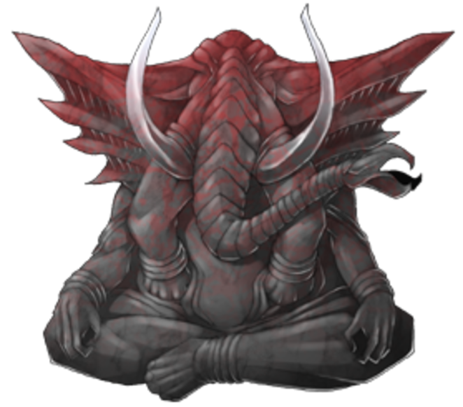 人間の体に象の頭、長い鼻は花弁のように広がり、胡坐をかくように座ったそれは……