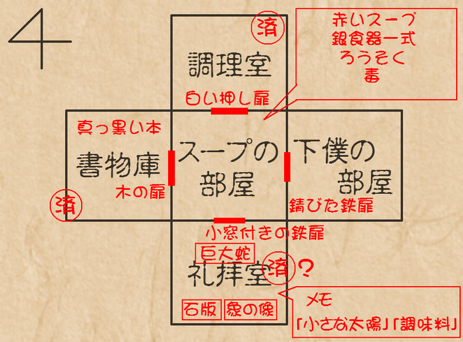 扉が開くと中は真っ暗だけれど、短くなったろうそくが部屋を少し照らしてくれるよ