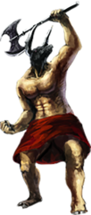 ツノが大きい牛が二本足で立って、フーフーと荒い息をしてこちらを睨んでいる。
