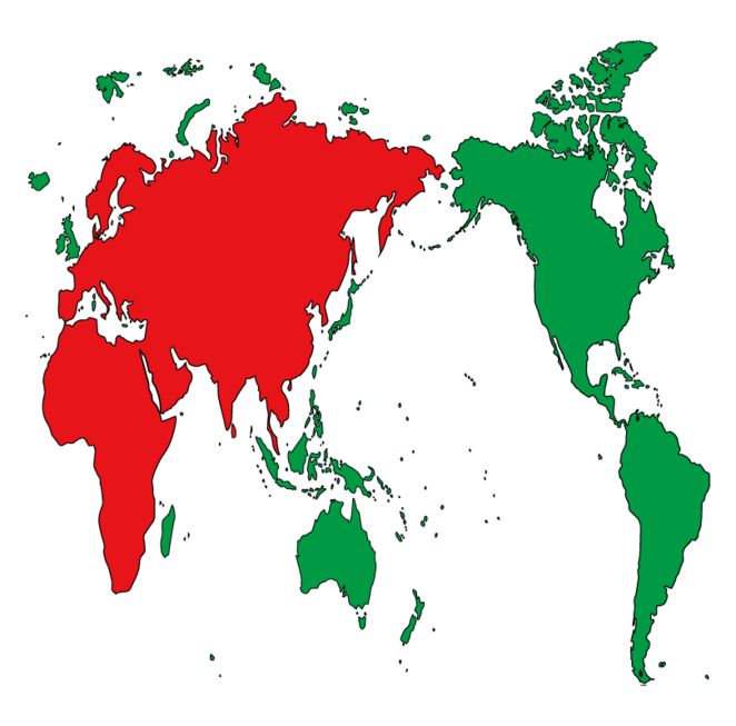 現在の世界地図、赤い部分は全て侵食済みになっており