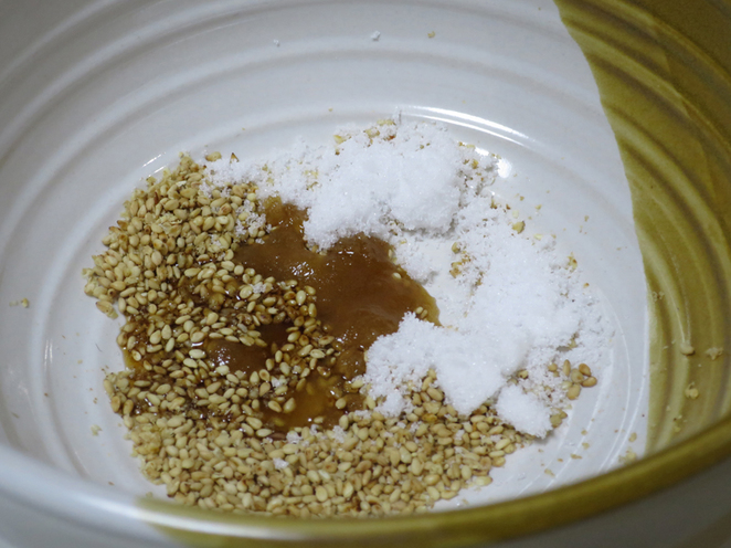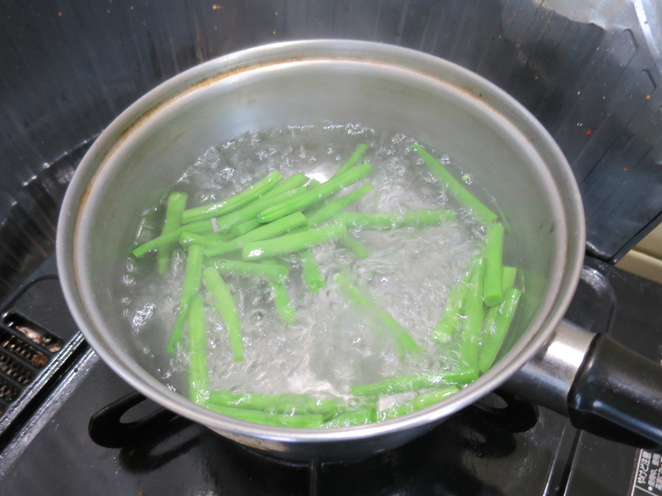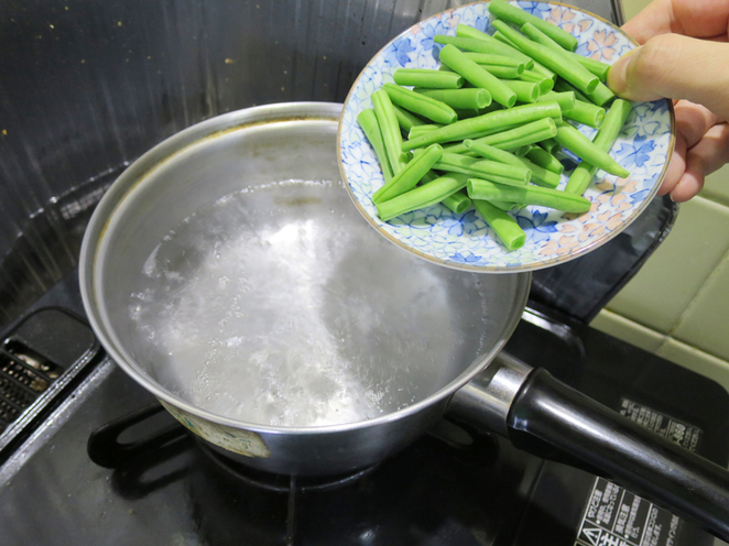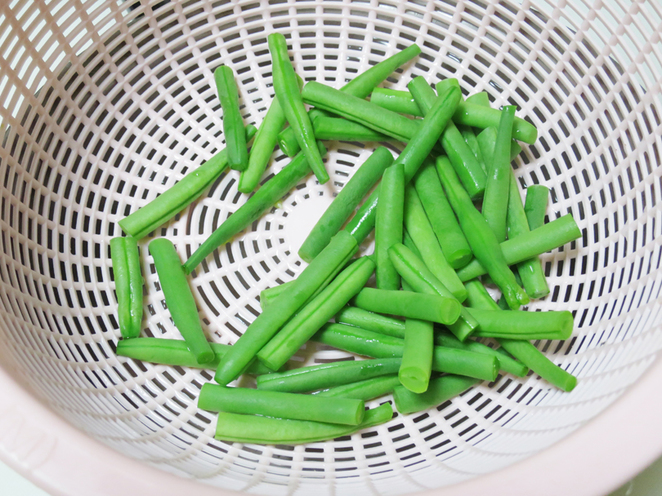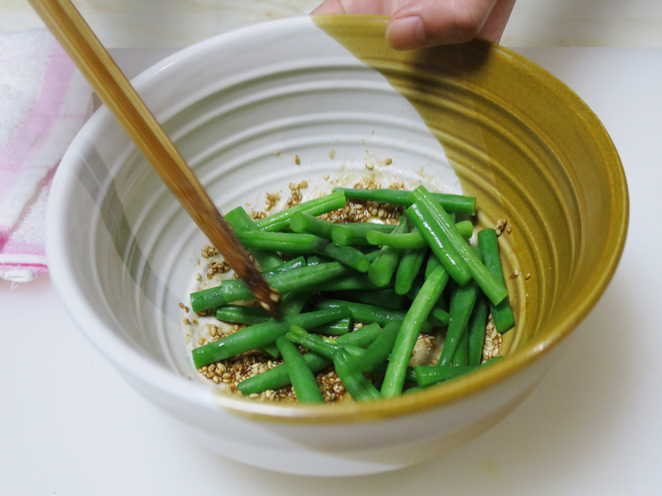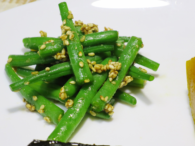 あ、そうだ。インゲンのごま和えを昨日作った残りがあるよ
