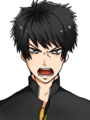とこめかみに青筋と顎に大きな青あざを作りながら