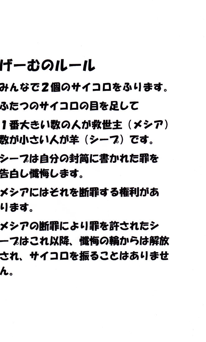 そして井川様は断罪の輪からぬけられましたのでお二人以外の方でメシアを決めます~!もう一度サイコロをお振りくださ~い♪