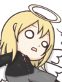 (兄曰く健康的な)青い肌の少女と、並んでいた友人が振り返る。