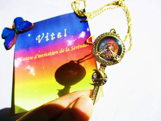 左手には夕暮れ色の招待状、右手には夕暮れ色の鍵、そして頭上には本物の夕暮れ。まるで物語の始まる条件が揃ったようだ。