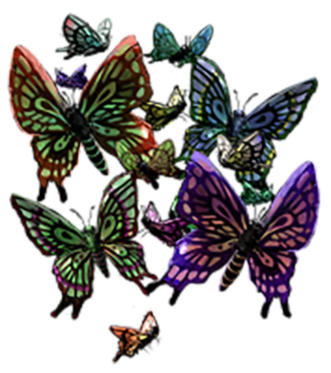 しかし、目の前には色とりどりの蝶が壁を作って