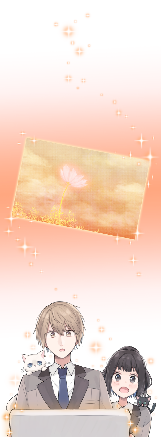 夕焼け空に向かってぐんと背を伸ばす、桃色の花。