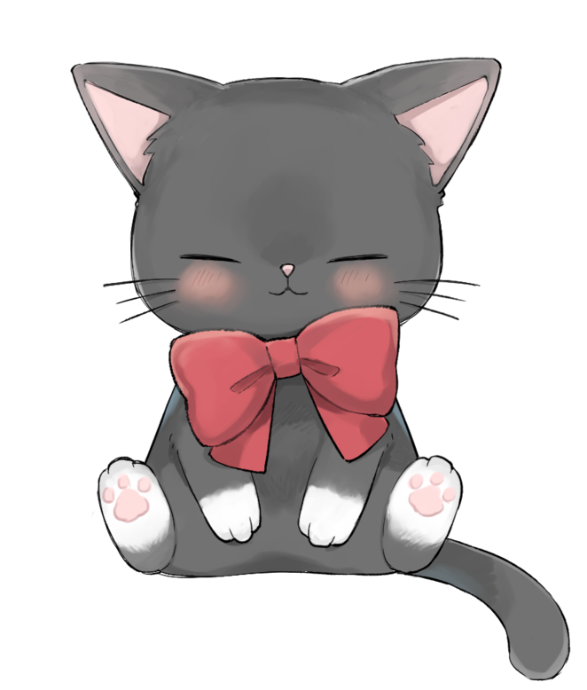 牧野先生からもらった赤いリボンをつけたクロニャが、えへへと首をかしげる。