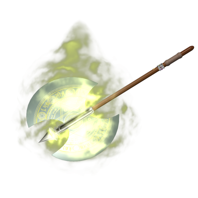 シンの斧に光付与をするクレア。