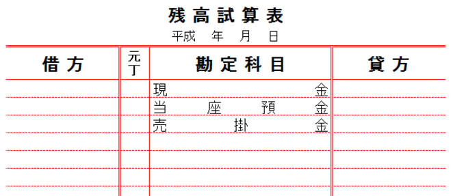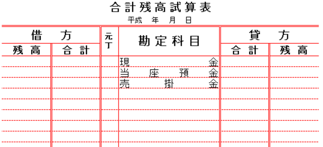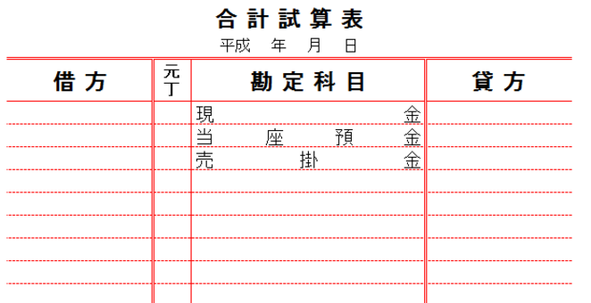 試算表には、勘定科目の借方・貸方のそれぞれの合計を記入する「合計試算表」、それぞれの残高を記入する「残高試算表」、「合計」と「残高」を合体させた「合計残高試算表」の3種類があって、変則的な出題をされることもある。