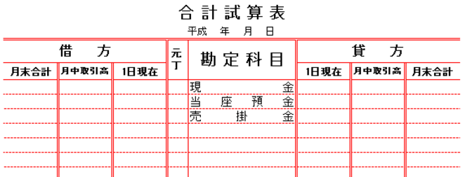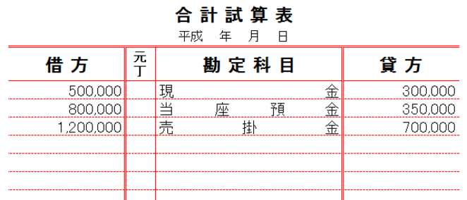 その中で、合計試算表は、借方・貸方それぞれの「合計」を記入していくものだな。