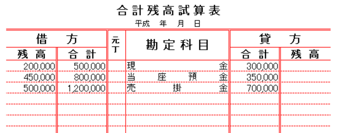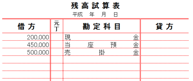 ちなみに、これが「合計」ではなく「残高」になった場合には、貸借どちらかにのみ記入することになる。