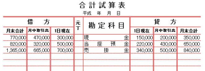 「合計試算表」の「合計」が「残高」に変わっていますね…