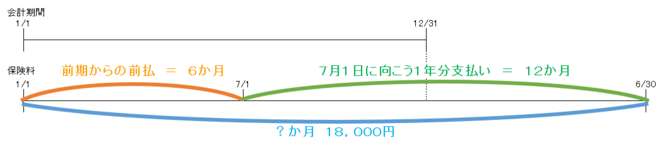 つまり、精算表の残高試算表に記入されている18,000円は、前期からの繰越分も含まれているから、7月1日からの12か月分を加算して、合計18か月分という訳ですね!