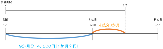 この例でいくと、10月~12月の3か月分は未払ということになるから…