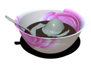 マリルーはどんぶりの中に、すこしづつしょこらあとを注ぎ入れた。