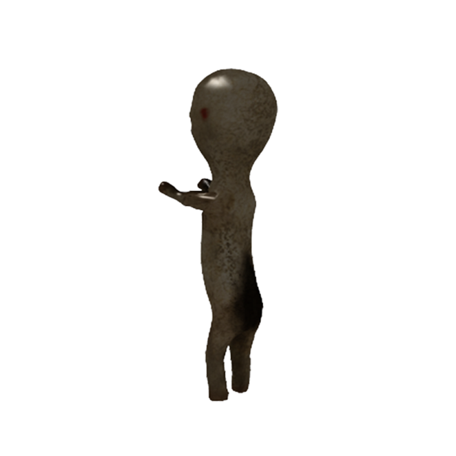 ...そこにいた"生物"とは、頭部の大きい人型の彫刻のような物が部屋の隅で壁に両手を付いていた。