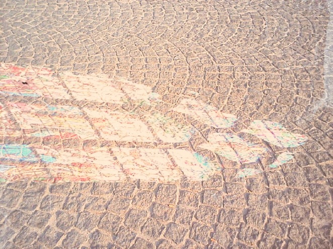 すたっと着地した場所は、教会のステンドグラスが夕陽で地面に照らされている石畳だった。黒猫は慌ただしくその場でぐるぐる回ると、石畳をカリカリとひっかき始める。