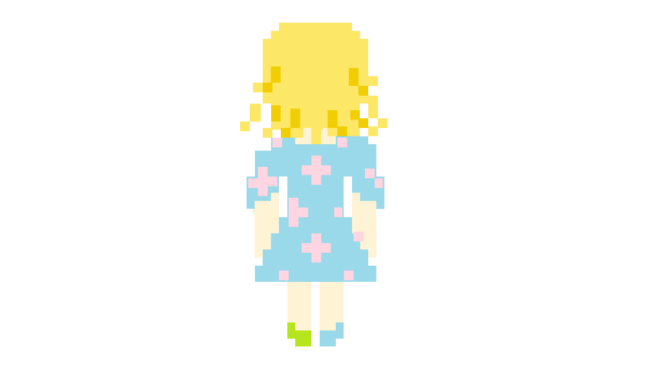 私? んーとね、ちょっとウェーブがかかった短めの金髪。CTRLキーと方向キー同時押しで大ジャンプができてね、霊感はまあまあってとこだったかな。歩き方とか、アイテムを後ろ手に持つところなんかは同じだけど。