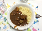 そしてご飯が日本人が大好きな白米じゃなく、怪しげな黄色い米のカレーライス。