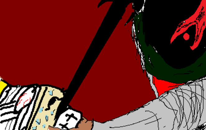 あまりにも一瞬すぎて腰を抜かすバニシング。そこでようやく格の違いに気づいた。ルシファーは腰を抜かしているバニシングの横顔に剣を添える。