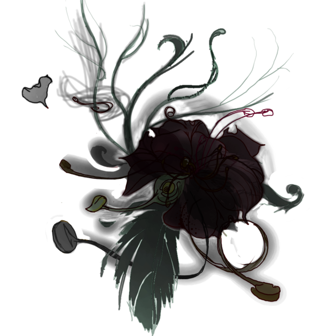 幽体の、正常な茎を持たない異質な花。 花粉。 根や葉や花粉管をいびつな花から伸ばし、 生物に憑りつこうとする姿。