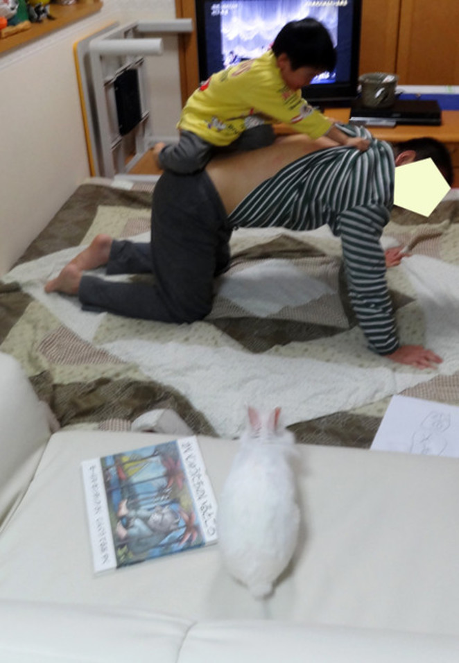 男の子もお父さんの上に乗っているし。