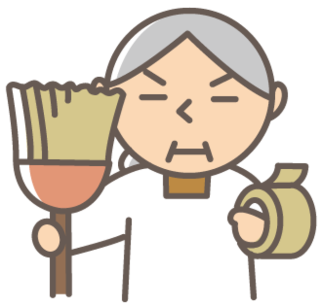 姑はどんな箇所でも、ほうきで掃き出し、どんな小さなほこりや髪の毛もガムテープで仕留める。