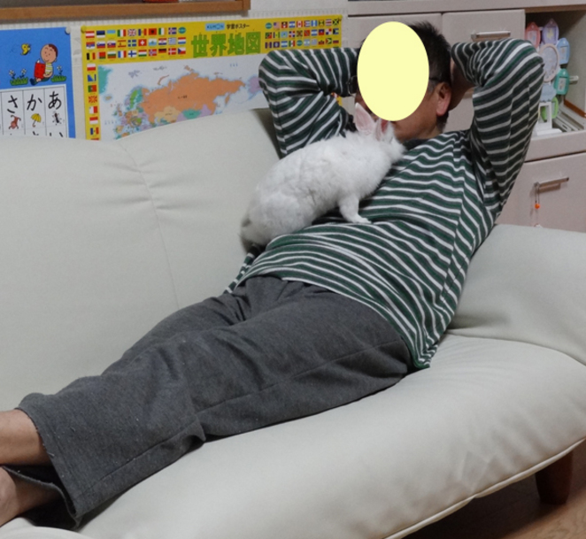 お父さんもゴロゴロしていたら、乗りたくなる。ボクって甘えん坊なんです。