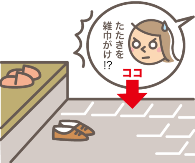 ただ、拭いたところが乾かないうちに子供達が帰ってくると靴についていた運動場の土が泥と化し、あっという間に玄関は元よりひどい状態になります