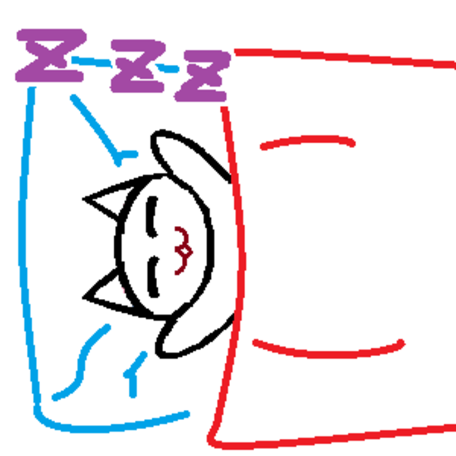 まずはいつも寝ている場所で眠る体制になります。