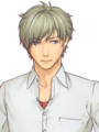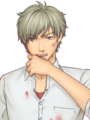 座り込み膝に腕を乗せ佐藤を見る幸宏