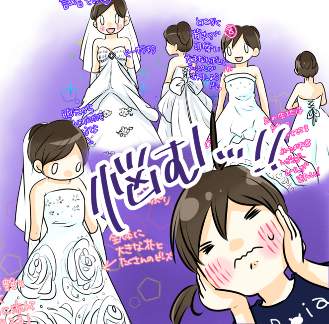 このドレス3つで悩んでるんだけどさ…
