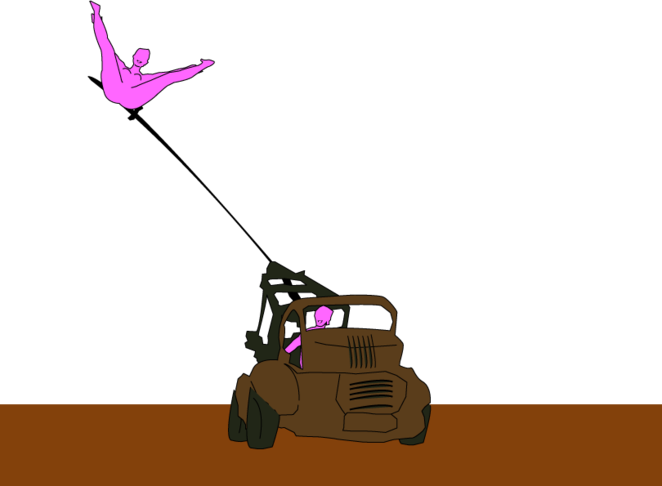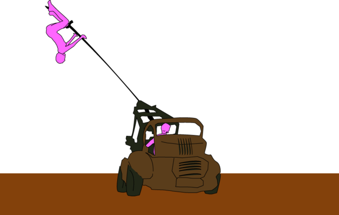 サクラさんは、私にハンドルを握らせると、ジープから跳びあがった。