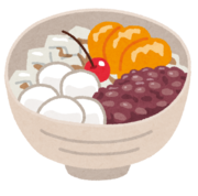 定食についてくることのあるもので、寒天に豆、餡子に缶詰のミカンが乗せられた、フルーツあんみつ。