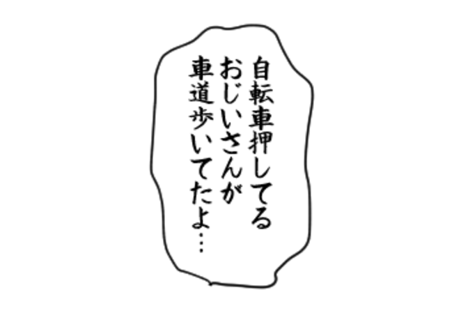 自転車を押したおじいさんが車道側を歩いてて