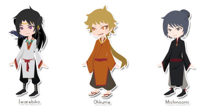 イワレビコはオトウカシを中へ案内するため席を立つと、オオクメとミチノオミに視線を送る。