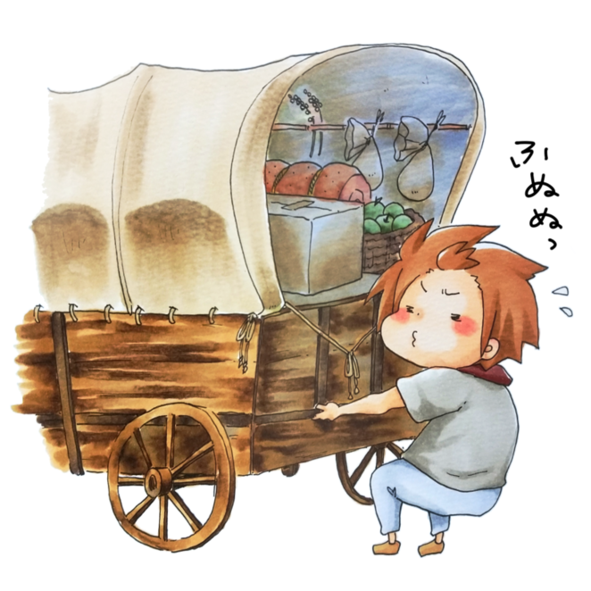 色黒の大男は、何もなかったふうに商人に話しかける。商人も手を貸してくれた礼を込めて、十分な量の食料を渡した。