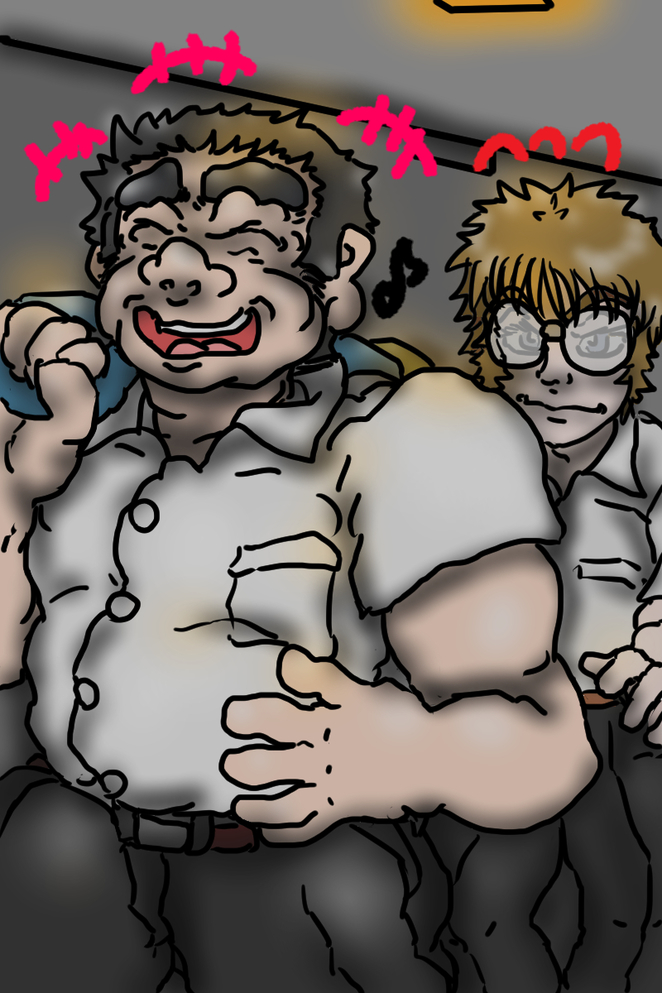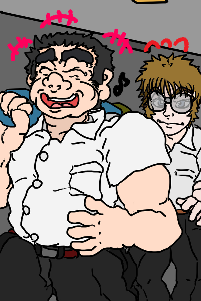 そのおおきな体格の級友が、これに負けず劣らずばかでっかくした正体不明の〝怪物〟みたいな見てくれした何者かに、ガバッ! と、ちからいっぱいに抱きついている!?