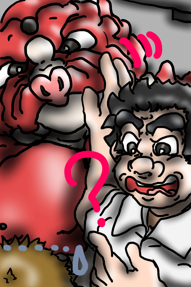 着ぐるみの怪獣のいかめしい顔面を両手でがっちり掴んで、それを右へ左へしげしげとねめ回しながらの相棒は、また言った。