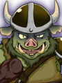 幹部の中では一番年若い、しかし実力で地上モンスター軍の長になった、オークのガズボルト。