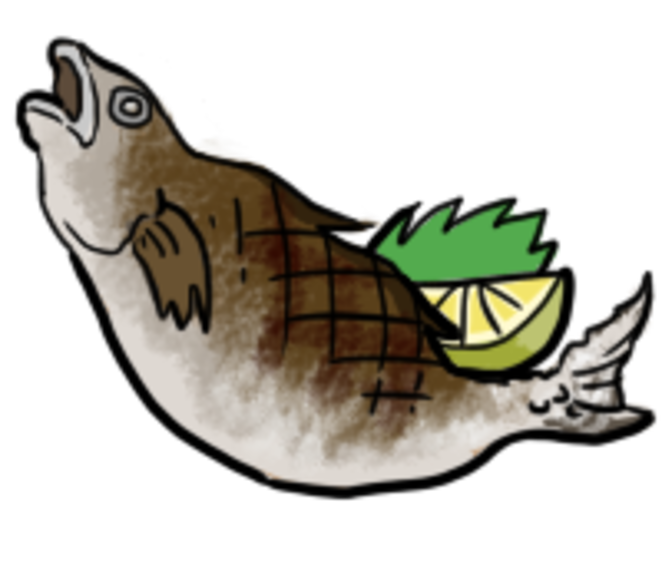この魚大きいねぇ。まるで狼さんの言ってたあの魚みたい
