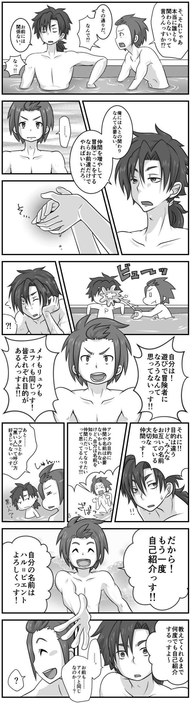 露天風呂で湯に揺れる月を眺めるハルは、意気消沈していた。一緒に冒険者になる者の名さえ分からぬ。そんな悲しい事があるかと、やきもきした気持ちを抱えたままだった。