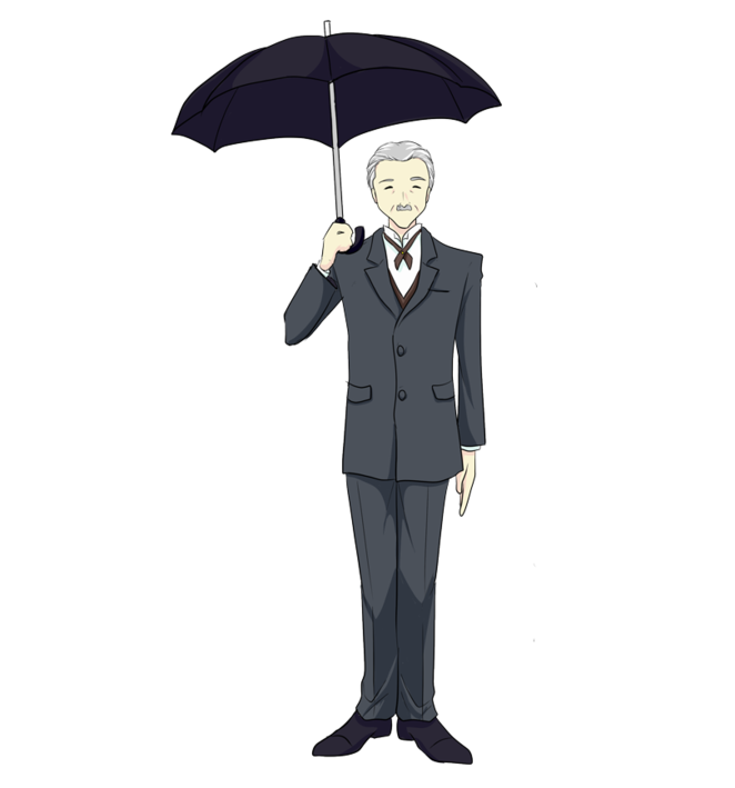 傘は爺やさんがさしかける。