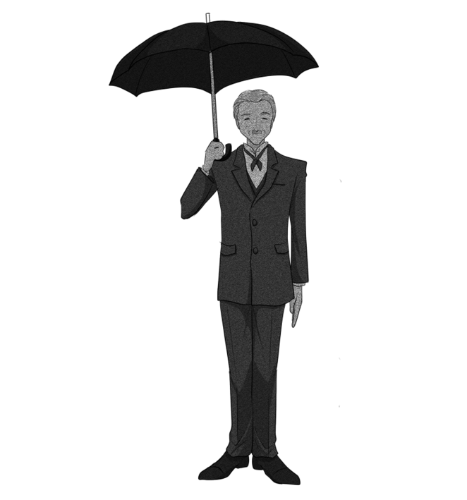 爺やさんが傘をさして待っている。