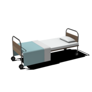 ベッドの横には患者の友人からだろうか、花束や沢山の果物が置かれている。
