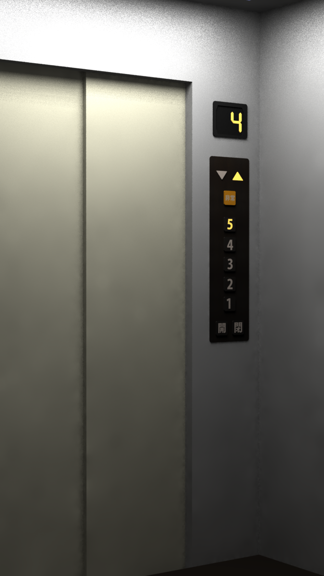 三人はエレベーターに乗り込む。