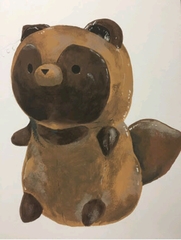 経丸がお気に入りの、タヌキのぬいぐるみに話かけていると