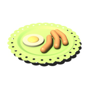 トースト、目玉焼き、ウィンナーが皿に盛られ、